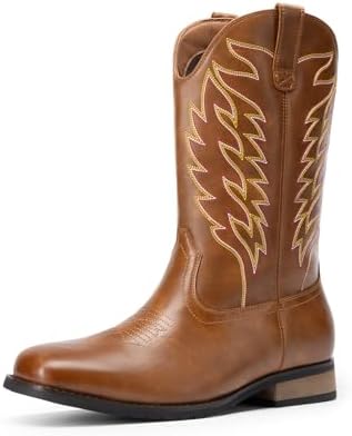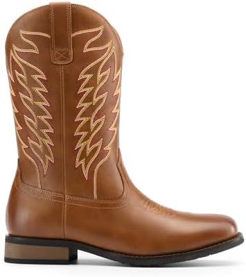 Bruno Marc Cowboy Boots for Men, Slip on Western Boots with Chic Embroidered Durable Short Retro Country Square Toe Boot