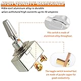 - Product Specifications: Current: 50 Amp Voltage: 12V DC Electrical Life ≥10,000 Cycles Operating temperature: -20ºC to 85ºC (-4ºF to 185ºF) Package Includes: 2 x ON/OFF Toggle Switch Aluminum Handle Marine toggle switch is made of high quality aluminum alloy material with good hand feeling, suitable for various environments and durable. 2 Pin Toggle Switch ON-OFF 2 Position toggle switch with 2 pin terminals. Terminals are provided with screws for easy fixing of wires. Screw Terminals The terminals are equipped with screws for quick wire connection and easy soldering. Widely used in trucks, boats, yachts and household electrics. Installation Dimensions The diameter of the opening is 12mm (0.48 inches), and the installation environment should reserve a depth of at least 31.4mm (1.24 inches).