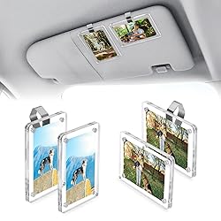 Fits Standard Photo Sizes: CARFIB car picture frame dimensions 2.36 x 3.54 inches, thickness 0.12 + 0.12 inches. Compatible with photo papers smaller than 2.36 x 3.54 inches, including 3.39 x 2.13 inches and standard 3-inch photos (3 x 2 inches) Clarity Acrylic with Visor Clip: Car picture holder is crafted from high-transparent acrylic, offering clear display for your photos. Its sturdy design adapts to temperature changes inside your vehicle, keeping your photos in great condition. UV protection keeps them from fading, and the easy-to-clean surface ensures lasting beauty with minimal effort. The stainless steel visor clip attaches securely to your car's sun visor, while the double-sided adhesive on it lets you position your photo in any direction to match your style Magnetic Design for Easy Use: Featuring an innovative magnetic design, car photo holder securely holds your photos between two transparent acrylic panels. The magnetic functionality allows for quick photo changes without reinstall the frame, ensuring it stays firmly in place even when the vehicle is in motion Display Memories in Your Car: Transform your vehicle into a cozy space by displaying cherished photos of family, friends, or special moments. This car visor picture frame adds a touch of personality to your auto interior, letting you enjoy heartwarming memories during daily drives or road trips. Whether you're in your car or on the go, this stylish frame keeps your favorite pictures front and center A Thoughtful Choice for Travelers: For those who spend a lot of time on the road, giving this picture frame for car is a thoughtful gesture. It helps keep your special photos close, creating a familiar and calming atmosphere in your vehicle, making every journey feel a little more like home. A meaningful way to carry your memories with you, ensuring that wherever the road leads, you always have a piece of home by your side