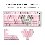 HITIME XVX Crystal Jelly Keycaps 75 Percent, Cute Custom Keycaps 95 Keys with 20 Keys Clear Key caps, Cherry Profile for 61/68/84/87 Cherry Gateron MX Mechanical, Side Printed, Pink