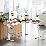 - FEZIBO L Shaped Standing Desk with Drawers, Electric Adjustable Height Gaming Desk - Corner Desk with Splice Board, Light Walnut Top/White Frame