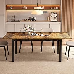 - Extendable Dining Table for 4-6, 63" Modern Kitchen Table, Farmhouse Dining Room Tables for Dining, Kitchen, Office, Living Room, Rectangular Wooden Tables, Space Saving (Rustic Brown)