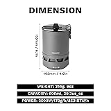 Ultralight All-in-One Kit - Complete cooking system weighs just 255g (9oz), packs down to 4×4×6.1 inches. Has room for nesting in a standard 100/110g flat canister(NOT Contained) - ideal for backpackers counting every ounce. Fast Water Boiler - Integrated heat exchange ring and 2500W / 8531BTU/h output boils 2 cups of water in 1 minute 45 seconds with only 6.5g fuel consumption. Twist-Lock Windproof Design - Rotate the pot to securely engage with burner, creating a perfect cooking zone that reduces wind impact and heat loss. Ideal For - Petrel Quickboil Pro System is Ultralight, Ultra-compact with high heat efficiency and excellent wind-resistant ability so that ideal for virtually all solo adventures like Alpine climbing, backcountry, multi-day through trips and more Packpage Include: heat-exchange pot*1, stove*1, titanium canister stand*1