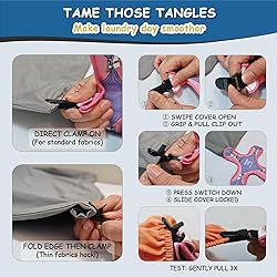 NO MORE WRESTLING WITH SHEETS: Our unique Cross-Shaped Design uses fluid dynamics to keep sheets open and flowing, acting as a powerful laundry tangle reducer. It prevents heavy sheets from roping, twisting, or trapping wet clothes inside. Ensures a balanced load and a cleaner wash for both top and front-loading machines. WHISPER QUIET & DRUM PROTECTION: Unlike hard plastic dryer balls or clips that sound like rocks in a dryer, our detangler is wrapped in Soft Composite Fabric with precise overlock stitching. This design eliminates loud clanking noises and protects your expensive appliance drums from scratches. Perfect for those looking for quiet laundry accessories. "TURTLE-SHELL" AUTO-RETRACT SAFETY: Think of it like a turtle: The hard clip stays hidden inside the soft fabric shell for safety. To Use: Open the slit tip, Flip Lever UP to unlock, clamp sheet, and Snap DOWN to lock. The elastic core instantly Retracts the clip back inside the cover. This ensures the plastic never hits your drum during the wash. FASTER DRYING & NO WET SPOTS: By keeping sheets spread out, hot air circulates evenly. Our Minimal Contact Design ensures the fabric under the clip dries completely—no damp spots left behind. Reduces drying time by up to 30%, saving energy and reducing wrinkles. US STANDARD SIZE STRATEGY: Includes 2 units. Use 1 Clip for Twin or Full size sheets; Use 2 Clips for Queen, King, or California King sizes. Note: Optimized for durable fabrics like Cotton and Polyester. Not recommended for delicate 100% Silk or Rayon due to the strong grip tension.