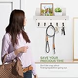 Keep Keys & Essentials Organized: This wall-mounted key holder with shelf provides a dedicated space for keys, wallets, dog leashes, and coats, keeping your entryway neat and clutter-free Premium & Lightweight Wood: Made from strong yet lightweight paulownia wood, each key shelf features unique grain patterns and knots, adding a warm and natural touch to your home Versatile Use: The metal hooks make this key rack perfect for entryways, offices, and bedrooms—use it to hang keys, coats, robes, towels, and more Quick & Easy Installation: Our mail and key holder wall mount Comes with detailed instructions and all necessary mounting hardware, ensuring a hassle-free setup in just minutes. Its compact size offers ample storage while saving wall space Perfect Housewarming Gift: This stylish and practical key shelf is a thoughtful gift for family and friends, seamlessly blending with modern, rustic, and farmhouse decor styles