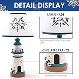 HERBESTBAY Kids Table Lamp, 14" Navy Blue Lighthouse Style Bedside Lamp with LED Bulb, Cute Nautical Desk Lamp for Kids Bedroom or Nursery Decor