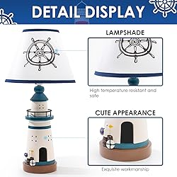 Adorable Lighthouse Design: Whimsical and fun, this cute panda bedside lamp brings joy and personality to any child’s bedroom or nursery. A perfect companion for Sailing lovers. LED Bulb Included for Instant Use: Comes with an energy-efficient LED bulb (E12 base), compatible with incandescent, halogen, or LED bulbs up to 40W. No need to buy a separate bulb—plug and light up! Ideal Size for Nightstands & Desks: Standing 14 inches tall and 9 inches wide, this compact table lamp fits perfectly on nightstands, desks, or dressers in kids' rooms. Child-Safe & Durable: Made from high-quality resin and designed with safety in mind. This nursery lamp equipped with a child-safe plug and cord—durable enough to handle curious kids and pets. Great Gift Idea: A perfect gift for birthdays, holidays, or back-to-school season. Surprise your child with this charming table lamp that brightens up bedtime and decor alike.