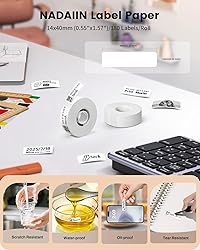 - NADAIIN Label Maker Tape for N12 D30 Label Maker, 14 x 40 mm (0.55'' x 1.57'') for Home Office School Labeling Tape Replacement, 180 Labels/Roll, 3-Roll, White Item size: 1.69"L x 1.69"W x 0.59"H Weight: 58g