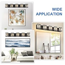 Unique Design: MELUCEE modern led vanity lights for mirror features an exquisite and modern design, using cube smoke acrylic panel which is unique pattern for each light, stylish & classic to add a new and fashionable decor to your bathroom Eye Comfort: The built-in 3000K LED chip provides a soft warm light. The light passing through the smoke acrylic panel will not dazzle, and is softer and more even, protecting your eyes. The 40 watts 3000K light (CRI≥90) will be more realistic when you are applying make-up, reading or displaying products Energy Saving & Smooth Dimming: This 25W led black vanity light saves up to 80% electricity compare to conventional light bulbs and lifespan up to 50,000hours. The modern led bathroom lights compatible with most LED dimmers on the market (not included), allows you to adjust the LED light output luminance Easy To Install: LED 25 watts, hardwired, USA standard back plate. This black dimmable bathroom light fixtures directly connects to the reserved wire, and then mount to the wall Wide Application: The wall mounted light with crystal column emits a warm and romantic lighting, Ideal for your bathroom, dressing room, laundry room, living room, kitchen, hallway and other locations Bring The Collection To Home: Check out the other pieces of the Collection by MELUCEE to bring a cohesive look throughout your home