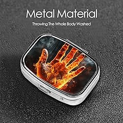 Small Pill Box Portable Pill Case 2 Compartment Metal Pill Vitamins Holder Organizer Cute Fire Flame Hand Travel Pillbox for Purse Pocket