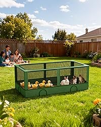 DINMO Small Animal Playpen, Chicken Brooder Box with Cover, Waterproof Indoor Outdoor Pet Cage with Sturdy Metal Frame for Bunny, Guinea Pig, Kitten, Puppy, Duck & Green