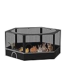 - Still worrying that your little friend is stuck trying to escape? This Chicken playpen is made of brand-new PE material and double-layer Oxford fabric, this pet fence offers sun protection, waterproofing. It can circulate air, dissipate odors, and protect your little cute at the same time. Want to peek at what your little guy is doing? This fence chooses 1.5mm high-density nylon mesh as the top protection to prevent the little guy from jumping out, while allowing your sight to be more thorough. Specifications: Color: Black Material: PE material, double-layer Oxford fabric, nylon, Plastic Connector Product Size: 51.3" x 46.4" x 22.8"(138 x 118 x 58 cm) product weight: 6.6LB(3 kg) Package: 1.Iron pipe A:1.6x26.0cm x12 B:1.6x37.5cm x24 2.Plastic Connector C:x18 D:x12 3.Waterproof Oxford cloth mesh cover x1 4.Waterproof Oxford cloth bottom x1 Instructions: 1 pcs Note: The Playpen is intended for small pets only. Do keep it away from fire and heat sources. Please do not use it outdoors for extended periods of time.