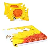 6Pcs Bed Sheet Set King Size, Sunflower Floral Printed Soft Microfiber Bedding Sets with 1 Butterfly Patterned Sheet 1 Deep Pocket Fitted Sheet and 4 Pillowcases, Yellow