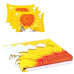 - 6 Pcs Yellow Floral Print Sheet Set King Size, Sunflower Butterfly Soft Microfiber Sheets and Pillowcases, Deep Pocket Features: The Bed Sheet Set is made from microfiber, which is soft, cozy, fade and wrinkle-resistant. Bed sheet King set with deep pocket fitted sheet can pull snugly over thick mattress up to 14". There are elastic bands around it to prevent it from falling off. Beautiful sunflower floral butterfly pattern sheet set - Say goodbye to boring solid sheets, refresh your bedroom with these beautiful and unique printed sheets. Easy Care Bedding Sheets & Pillowcases: Machine wash and dry low.