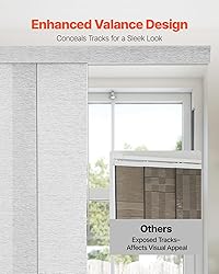 100% Polyester High-Quality Polyester Fabric: Made from premium polyester, our panel track blinds provide exceptional strength and durability. They endure fraying and tearing, stay fresh, and are built to last – a reliable choice for your home Smooth, Quiet Operation: The panel blinds for sliding doors are equipped with a sliding track system for silent and seamless gliding. Dual stack options allow you to slide them left or right, providing flexible light control based on your preferences Seamless Installation: Easily connect multiple sets side by side for a seamless, gap-free look. Adjustable track spans 45.8-86 in / 116-218 cm, suitable for ceiling or wall mounting, adapting to various layouts and design needs Trim-to-Fit Height: Easily cut to your desired height for an ideal fit. Whether it's a small window, large sliding glass door, or custom room divider, these sliding panel blinds can be precisely tailored for a professional, polished look Multi-Purpose Design: Sliding door blinds are ideal for patio doors, balcony doors, French doors, closet doors, large windows, and room dividers. An elegant upgrade over traditional vertical blinds or curtains, with a top valance for a polished look