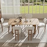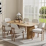 RGZ Modern Oval Dining Table Set for 6, 71" Natural Wood Kitchen Table & 6 Upholstered Beige Dining Chair, Farmhouse Dinner Table and Wooden Chairs for Apartment, Living Room, Home