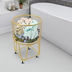 - Specification Color: GoldStyle: ModernShape:Circles/Squares/ Rectangular/Rough Mesh CirclesMaterial: IronProcess: High-temperature Baking Paint Assembly Required: YesMount Type: FreestandingNumber of Universal Wheels: 4(2 with Brakes) Iron Pipe Diameter: 13mm/0.51 in Raised Botton Height: 5cm/2 inBasket Size: 43*23*45cm/16.9*9*17.7 inPackage Size: 48*45*25cm/18.9*17.72*9.84 inGross Weight: 3.5kg/7.72 lbsNet Weight: 3.32kg/ 7.32lbsPackage Included1* Rolling Laundry Basket4* Universal Wheels1* WrenchNotes1.Please check the size before ordering. 2.Please note that this product does not contain clothes and other items for display.3.Please allow the slight color difference caused by the shooting light and 1-3cm error due to manual measurement, and make sure you do not mind before ordering.