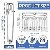 Ftyiwu Large Safety Pins, 15 Pack Heavy Duty Safety Pins 3 Inch, Stainless Steel Safety Pin for Clothes, Blankets, Laundry, Leather Canvas, DIY Crafts