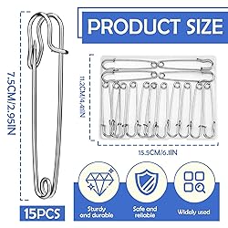 Package Included: The heavy duty safety pins includes 15pcs 2.95in(75mm) durable silvery safety pins with transparent storage box to meet your daily needs, perfect for crafters or who need large safety needles for work. High Quality: The heavy duty safety pins are made of stainless steel which are strong and sturdy, wear resistant and not easy to bend. It can withstand considerable pressure and is not easy to rust. Can be used with different materials such as wool, leather, canvas, clothes and interior decoration. Easy to Use: Sharp tips can easily penetrate fabrics without causing excessive damage. Long term use is not easy to fade, and multiple opening and closing uses can still maintain elasticity. Safety Design: The safety buckle design effectively prevents accidental loosening and protect your fingers from accidental injury. The thickened and enlarged appearance is more sturdy and can withstand weight.These jumbo safety pins comes with a plastic box for easy storage and convenient carrying. Multiple Applications: These large safety pins are perfect for sewing kits, clothes, fixing diapers, quilts, blankets, mattress pads, crafts, tent reinforcement, household tools.It is also suitable for making jewelry or keychains, daily decoration.