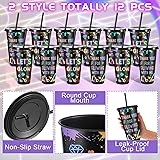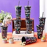 Neon Theme Pattern: our production includes 12 pcs neon party plastic cups with two different words "let's glow" and "thank you for glowing with me", These words are printed in high-visibility neon colors, although plastic straw cups cannot glow, the printed pattern of the straw cups also fits in with the neon theme and is suitable for daily use Large Capacity and Portability: the reusable tumblers have a generous capacity of 24 ounces, making neon party plastic cups suitable for holding a variety of beverages, from soft drinks to cocktails; With dimensions of approximately 6.81 x 4.17 inches/ 17.3 x 10.6 cm; Neon party plastic cups can accommodate standard drink servings without frequent refills; Additionally, the neon theme supplies allow for easy transportation, whether for indoor events or outdoor parties Reusable Material: neon party cup with lid and straw is made of safe plastic, these cups with straw are not disposable, not easy to break, and can maintain using for a long time; The smooth surface and plastic material make reusable tumblers easy to clean Neon Party Plastic Cups with Lid and Straw: each reusable neon straws cups comes with a matching lid and straw, so you can enjoy your drinks while socializing or dancing; This design helps prevent drinks from spilling, making neon theme cups ideal for carnival parties or casual gatherings; For optimal performance, ensure the lid is firmly closed to prevent splashing Versatile Party Uses: whether you are hosting a birthday party, summer bash, picnic or poolside party, these neon themed cups are suitable and can meet the needs of neon theme lovers; Additionally, these plastic cups with lids and straw make a suitable birthday gift for party enthusiasts or someone who enjoys bright, stylish drinkware; Neon party cups can pair with other neon themed accessories for a complete party set