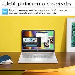 - Intel Processor N150 Save time and increase productivity with powerful performance and smooth multitasking. Access fast web applications, edit photos and videos, and get the responsiveness you're looking for. 128GB Universal Flash Storage Non-volatile storage handles multiple read and write requests simultaneously. Power gating increases power efficiency. Wi-Fi 6 (2x2) and Bluetooth 5.4 wireless card Expect faster speeds and improved performance for connecting multiple devices in your household. HP True Vision HD Camera Video chat with vibrant clarity, even in low light. Temporal noise reduction ensures you're always heard. Ports 1 Multi-format SD media card reader, 1 USB Type-C (10Gbps signaling rate, DisplayPort 1.2), 2 USB Type-A (5Gbps signaling rate), 1 Headphone/microphone combo, 1 AC Smart pin, 1 HDMI 1.4b Weighs 3.24 lbs. and measures 0.71" thin Incredibly lightweight design supports maximum portability while providing the computing power of an Intel processor. 3-cell, 41 Wh Li-ion battery. Microsoft 365 Bring your ideas to life with the included one year subscription of Microsoft 365 including Word, Excel, and PowerPoint. Now with smart assistance features to make all you do more powerful.