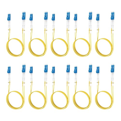 Yonwide Single Mode Fiber Lc to Lc 2m (6.56 ft) 10 Pack, OS2 Single Mode Patch Cable Duplex, Singlemode Fiber Optic Cable Lc to Lc, LSZH SM Fiber Jumper Cord, Yellow SMF 2 Meter