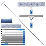 All-in-one Window Cleaning Kit: This window cleaner tool provides everything you need for window washing jobs, including a 14’’ squeegee, 14’’ scrubber, and extension poles that can extends up to 10 Feet, all with professional-grade to ensure efficient cleaning experience. Streak-free & Squeak-free Squeegee: This window cleaner tool is fitted with superior silicone blade, soft and durable, allowing for streak-free result, squeak-free water control without scratching your windows. Constructed with rust resistant stainless steel frame, this squeegee for window cleaning is unparalleled durable. Premium Microfiber Scrubber: The microfiber washer can scrub the window surface and remove the dust & stubborn stains, 2 pieces in total, easy to replace and can be washed by machine. A extra cloth is provided to wipe the water and marks in window edges and corners. Comfortable to Hold: The rubber, ergonomic grip provides comfortable feeling, releasing the tension for long time window cleaning jobs and will not slip in wet hands. When connected with the extension poles, the long handle stay stable to clean high windows and will not swing even in tough swiping. Versatile to Use: This window squeegee and scrubber can be used handheld to clean the car, mirror, shower door, tile and counter. Equipped with the extendable poles, length adjustable between 21-118'', it can efficiently clean many areas and surfaces, such as car windshield, indoor and outdoor high windows, French window, balcony glass, camper, marine and boat.