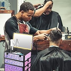 - Versatile Rolling Makeup Case with adjustable lighting and extra-large, lockable large drawers. The detachable mirror and modular design make it ideal for professionals and personal use, offering portability and secure storage for tools like hairdryers.