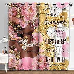 HIYSMT Black Woman Curtains African American Black Girl Blackout Curtain Gorgeous Pink Gold Flower Funny Inspirational Quotes Drape for Lady Bedroom Living Room 4284inch 2Panel HI022YL