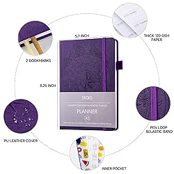 SEQES A5 Undated Planner- Leather Cover with goal tracker,full focus And habit To Increase Productivity organizer And Goal Setting & Reflection Journal | Weekly/Monthly Planner (purple)