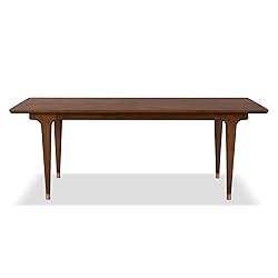 - Artfully Crafted for Midcentury Dining Elevate your dining experience with this wood dinette table, beautifully finished in walnut to showcase the natural wood grain. Constructed from solid rubberwood, acacia wood, and walnut veneer, this walnut table combines strength with timeless style. The 82-inch width comfortably accommodates family and guests, while the soft round edge top adds a welcoming touch. Gold-capped solid wood legs provide stability and a subtle hint of glamour, perfectly balancing the minimalist silhouette with refined details. The craftsmanship and materials ensure this wooden table remains a centerpiece for both everyday meals and special occasions.Spacious Space for Memorable Moments Designed for versatility, this unique dining table suits everything from casual breakfasts to elegant dinner parties. The expansive surface offers ample room for place settings, serving dishes, and decorative accents, making the rectangle table ideal for hosting gatherings of all sizes. The rounded edges enhance comfort and safety, especially in family homes, while the gold-tipped legs add a distinctive mid-century flair. The natural wood grain brings warmth and character to your dining area, ensuring to remains stylish and inviting for years to come. Whether paired with matching chairs or mixed with eclectic seating, this dinner table is the foundation for countless shared moments. Have a question or need assistance? Contact us before starting a return—we’re here to help! 📞 Customer Service: 888-980-5122 📧 Email: [email protected] We’re dedicated to finding the best solution for you!