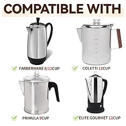 - Compatibility: Coffee filters only compatible with Farberware 8/12 cup, Coletti Bozeman 12 cup coffee percolator, Primula Today 9 cup percolator, Elite Gourmet EC812 percolator, Cuisinart PRC-12N.