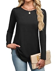 Material : These Long tops for women made from a soft and comfortable knit fabric, breatheable and skin friendly.This tops offers a cozy feel that's perfect for cooler weather Stylish Design : This blouse features a flattering curved hem design perfect to hidding your tummy and built your curve. Loose fit and flowy tunic tops for fall winter. 2026 trendy fall tops and blosues. The must-have tops in your fall and winter wardrobe Match : This basic tunic tops great to pair with leggings, variety of jeans, pants, skirts, sweatpants and shorts. It's also nice to wear with blazer, cardigan, coats and jackets Occasion : This dress shirts not too thin and not too thick, they will needed in overall year. Casual, daily, street,school, street, date, out going, work, church are suit for. Spring fall outfits must have Available in Multiple Sizes : Designed to fit a variety of body types, it is available in multiple sizes to ensure the perfect fit for everyone.Easy to care:Support machine/hand wash.No bleach