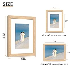 - upsimples 6x8 Picture Frame, Natural Solid Wooden Picture Frames, Display 4x6 with Mat or 6 x 8 Without Mat, Wall or Tabletop, 1 Pack, Natural
