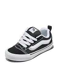 - The Vans Big Kids’ Knu Skool takes a late-’90s silhouette and turns it into something new, pairing oversized details with everyday wearability. Inspired by the original Old Skool, this low-top sneaker features wide chunky laces, a puffed-up tongue, and a 3D Sidestripe for standout style in any setting. Built with durable suede and canvas uppers, the boys' and girls' Knu Skool can handle school days, weekend hangouts, and everything in between. Vans’ signature rubber waffle outsole provides reliable traction and flexibility on the go, while padded tongues and collars deliver a snug, comfortable fit that reduces rubbing during long days on their feet. Crafted with sturdy vulcanized construction, these youth sneakers are made to last while keeping kids comfortable and confident through every adventure. Since 1966, Vans has inspired creativity, individuality, and self-expression – because having fun never goes out of style.