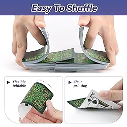 Playing Cards 2 Pack: This set includes two stylish green decks with unique pattern designs. The box is crafted with hot foil stamping for an exquisite finish. Perfect for multiplayer games or as a backup deck, it’s ideal for parties and family game nights Smooth Shuffling & Superior Handling: Featuring double-sided embossing for increased friction and a linen finish for a professional grip, these flexible yet sturdy cards are easy to shuffle and enhance your overall gaming experience Poker Size & Standard Index: Each deck measures 3.5” x 2.5” (88mm x 63mm) and includes 52 suited cards plus 2 jokers. The clear, easy to read indexes are perfect for classics like Blackjack, and Bridge Versatile Use: Suitable for a wide range of games including Bridge, Go Fish, Euchre, Hearts, Blackjack, Canasta, Texas Hold’em, and Pinochle. Perfect for family gatherings, casino-themed parties, or competitive play, these cards promote social interaction and strategic thinking. Great for game nights, magic tricks, and casual fun for both beginners and experienced players Great Gift Idea: This exquisite two-deck set makes an ideal gift for card game enthusiasts of all ages. Whether for a birthday, holiday, housewarming, or Christmas, our cards are sure to impress. With their unique design, and stylish look, this playing card set is both a practical and chic gift option
