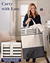 FREE-STANDING DESIGN: Built with a wire-reinforced rim along the top edge, this foldable laundry basket stands upright without collapsing. The sturdy frame maintains its shape even when empty, ensuring dependable performance every time. It stays open and ready for use—avoid hanging clothes on the rim. SPACIOUS STORAGE CAPACITY: Measuring 15.7" x 11.8" x 24", this 2-pack laundry room organization helper provides plenty of space for clothing, sheets, or stuffed toys. The generous interior keeps everything contained in one place. With fewer trips to the laundry room, you enjoy a more efficient and organized routine. REINFORCED HANDLES: Equipped with 2 long and well-stitched handles, this dirty clothes hamper is built for easy lifting. The strong seams reduce the risk of tearing under weight. Whether carrying up stairs or to the laundry room, you'll enjoy a comfortable grip that makes transport stress-free. LONG-LASTING FABRIC: This laundry bin is crafted from premium polyester-cotton fabric with a linen finish, offering lasting durability and resistance to wear. Its interior is lined with water-resistant material that wipes clean in seconds. With its sturdy material and easy-care design, this basket is ready for everyday laundry use. EASY TO FOLD: Built with a collapsible design, this hamper folds flat for effortless storage. Its compact shape slides easily into tight spaces such as closets or drawers. It adapts to various settings and is easy to use as an RV essential and hamper for bedroom or dorm, making your laundry collection simple.