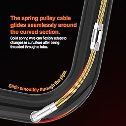 Premium wire material: the fish tape is made of high-quality Spring steel guide wire, dive through that tricky 120°bends with our 16.4ft., 1/6 in Dia wire. Slide through effortlessly: Our fishing tape features a nickel-plated carbon steel pulley head that allows cables to smoothly navigate conduits and complex bends, eliminating frustrating snags during cable pulling. All-rounder in wiring: the #1 choice for indoor wire installations, from wall conduits to floor conduits, telecommunications to general electrical setups - this fish tape wire puller's got game. High-strength spring steel material Made of high-toughness spring steel, it features strong anti-bending ability and resilience, can be repeatedly bent without deformation, and can easily pass through complex pipelines. Multi-layer design: High-end products use a three-layer solid spring structure. The outer layer is wear- and corrosion-resistant, the middle layer adds strength, and the inner layer offers flexibility for guiding in tight spaces and right-angle wiring.