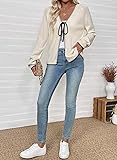 EVALESS Womens Cardigan Sweaters Trendy V Neck Long Sleeve Open Front Bow Tie Knit Chunky Lightweight Fall Outerwear