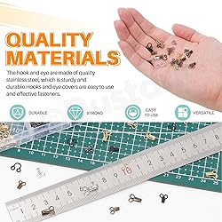 - ★Rustark 4 Sizes Sewing Hooks and Eyes Closure Assortment Kit Copper Bra Hooks and Eyes Bra Hooks Replacement Hook and Eye Clasps for Clothing Trousers Skirt DIY Craft ★ WHY CHOOSE US? ❤You'll receive a 170pcs 4 sizes sewing hooks and eyes closure assortment kit. Sufficient quantity and rich colors to meet your different needs in daily life. ❤These hook and eye closures are made of high quality copper which are not easy to deform and break, wear-resistant, rust-resistant, durable with long-term service life. ❤These hooks and eye closures are widely used in dresses, brassieres, bustiers, skirts, trousers, coat, collar, bag, jackets, fine lingerie closures, aprons, blouses, jeans, jumpers, etc. ❤The hook and eye closure in various colors are packed neatly in a separate compartment in a transparent storage box, making it easy to get the right colors and sizes. ★Specifications: ✯Product Type: Sewing Hooks and Eyes Closure Assortment Kit ✯Quantity: 170Pcs ✯Material: Copper ✯Color: Silver, Gun Black, Bronze, Gold, Dark Black. ✯Size: 11.7mm/0.46inch, 12.2mm/0.48inch, 15mm/0.59inch, 17mm/0.67inch. ★What You Get: 10pcs------15mm/0.59inch silver hooks and eyes closures 10pcs------15mm/0.59inch gun black hooks and eyes closures 10pcs------15mm/0.59inch bronze hooks and eyes closures 10pcs------15mm/0.59inch gold hooks and eyes closures 10pcs------15mm/0.59inch dark black hooks and eyes closures 10pcs------11.7mm/0.46inch silver hooks and eyes closures 10pcs------11.7mm/0.46inch gun black hooks and eyes closures 10pcs------11.7mm/0.46inch bronze hooks and eyes closures 10pcs------11.7mm/0.46inch gold hooks and eyes closures 10pcs------11.7mm/0.46inch dark black hooks and eyes closures 10pcs------12.2mm/0.48inch silver hooks and eyes closures 10pcs------12.2mm/0.48inch gun black hooks and eyes closures 10pcs------12.2mm/0.48inch bronze hooks and eyes closures 10pcs------12.2mm/0.48inch gold hooks and eyes closures 10pcs------12.2mm/0.48inch dark black hooks and eyes closures 10pcs------17mm/0.67inch silver hooks and eyes closures 10pcs------17mm/0.67inch dark black hooks and eyes closures Total: 170pcs ❤Warm Tips: -If you come across any questions or problems, please feel free to come to us. We will solve it for you as soon as possible!