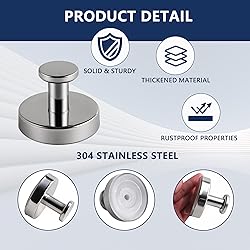✓Package Contents: Including 3 pieces shower suction hooks. Perfect for hanging towels, robes, coats, and more. ✓Long-Lasting Strength: Made of high-quality stainless steel, these hooks are rustproof, waterproof, and easy to clean, ensuring long-lasting durability and reliability. ✓Easy Installation: 1. Clean smooth surface. 2. Press silicone base firmly. 3. Install the sealing ring and stainless steel cover, twist hook clockwise to tighten – complete setup with no tools. ✓Ideal for Smooth Surfaces: Works on glass, mirrors, glossy tiles, stainless steel, and other smooth non-porous surfaces. Not suitable for rough or porous surfaces, including painted walls, wallpaper, or textured tiles. ✓Easy to Clean: The new adhesive combined with the twist & lock mechanism ensures no wall damage, while being easily removable and repositionable without leaving marks or residue.