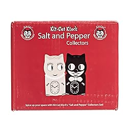 - These delightful Kit-Cat Salt & Pepper Shakers are the perfect blend of function and nostalgia. Hand-painted with care, each shaker captures the timeless smile and playful spirit of the iconic Kit-Cat character. Whether you're a longtime fan or just discovering his charm, these ceramic shakers bring joy to any kitchen or dining table. A thoughtful gift, collectible keepsake, or everyday companion for those who appreciate classic American design.