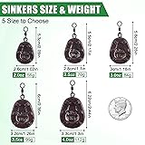 High Quality Material: The carp fishing weight is made of high-density materials, specially solvent treated and coated for a smooth burr-free surface that protects the line and is corrosion and rust resistant, providing reliable performance for carp fishing Flat Pear Shaped Design: The carp fishing weight sinker has a flat pear shape with a textured surface, which helps it to sit well on top of weed or silt, ensuring stability on the lake or riverbed. It is easy to shoot at long distances and can be dropped into the water or over obstacles with ease to satisfy the angler's fishing needs in any water Easy Set Up: The flat pear shaped sinker is equipped with a high-quality swivel that rotates freely through 360°, allowing you to easily attach your fishing line and effectively preventing it from twisting Wide Application: The brown coating of carp fishing weights blend naturally with the underwater terrain, reducing the risk of spooking fish. Whether you are fishing rivers, lakes or reservoirs, carp fishing sinkers are an excellent fishing accessory Package: 5 carp fishing weights per box. Available in 5 sizes: 2 oz, 2.5 oz, 3 oz, 3.5 oz, 4 oz. You can choose the appropriate size for your fishing needs