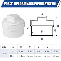 Material:The 3inch sewer cleanout adapter made of sturdy PVC, high-impact strength, strong impact resistance ,resistant to frost and corrosion. Easy to Install: Our sewer cleanout cap with Coupling can be solvent-welded for a watertight connection. The installation is simple and efficient.Provide a roll of Teflon tape to enhance the seal. Usage:Used to connect 3 inch PVC sewer & drain pipe fitting.Wildly Use in non-pressure residential and commercial underground sewer & drain, waste, and vent (DWV) Simplify maintenance process:The cleanout cap makes it easier to find plumbing problems. By properly maintaining drains, sewer pipes, and vent pipes, you ensure that wastewater within your building is handled efficiently, thus ensuring the proper functioning of the entire system. Including:Pipe set-Female cleanout and sewer cleanout cap and 1pc Teflon tape.