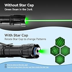 [Good Quality & Long Distance] This flashlight is made of aluminum alloy, very strong and durable, good quality, and it has a non-slip design, long distance range.[003] [Rechargeable Design] The light flashes when the battery is low. Just rotate the lid off the bottom of the product and you can charge it, It is compatible with all USB-A chargers, Whether it's a computer, a laptop, a phone charger, a powerbank, or a plugboard, you can charge it with a USB port. Charge it for half an hour and you can use it for hours on end.[003] [Starlight Pattern] Press down the star cap and rotate it to remove the star cap, then you can see a straight green light in the dark, and you can see different starlight patterns when you install the star cap. You can use it in many situations, such as construction sites, outdoor adventures, classrooms, meeting presentations, and other fun uses.[003] [Notice] Do not use the light directly at human's or animal's eyes, and keep it away from children.[003] [Our Services] Ourproduct comes with a 1-year warranty, if you have any questions or our flashlight have some defects, please contact us for further assistance.[003]