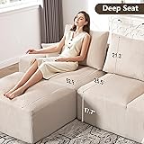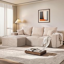 108" Modular Sectional Sofa, Compression Sofa with Deep Seat, Modular L-Shape Couch with Chaise, Upholstered Couches for Living Room Bedroom, No Assembly Required (Oat Corduroy, 108" L Shape)