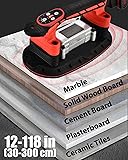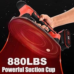 - This cordless tile vibration tool is a game-changer for tile installation projects. Whether you’re a professional contractor or a DIY enthusiast, this tile suction cup tool offers unparalleled performance and convenience.Powerful Suction Cup: The 9.8x5.5 inch (25cm*14cm) tile suction cup tool can easily grip tiles up to 880 lbs, suitable for a wide range of tile sizes 12-118 in (30-300 cm) from delicate mosaic tiles to heavy slabs.Customizable Vibration: With a speed up to 28,000 RPM and 9 customizable speed settings, the tile vibration tool allows you to fine tune the vibration intensity according to the type and size of the tiles, simply with one-touch activation, auto-lock during operation, and a quick pull to deflate.Secure Grip: Tile vibration tool features a diamond-textured non-slip suction plate to maintain a secure grip on textured surfaces, ensuring a secure hold even in wet conditions.Enhanced Comfort: The shock springs of tile vibration tool absorb 70% more impact than standard models, and anti-resonance technique prevents hand numbness during multi-hour jobs, ideal for installing wood-look floors, bathroom mosaics, kitchen countertops, backsplashes, and even uneven stone walls, backyard stone patios and other outdoor tiling projects.Accurate Measurement: An accurate bubble level gauge is included for measuring the vertical plane, helping you achieve a perfectly level tile installation.Extended Working Time: Tile vibration tool comes with 2x 1800mAh 21V Li-ion batteries, providing extended working time for your tiling projects.SPECIFICATIONSuction Capacity: max. 880 lbsVibration: 28,000 RPM, 9-GearSuction Cup: 9.8*5.5 in (25*14 cm)Applicable Tile: 12-118 in (30-300 cm)Battery: 1800mAh 21V Li-ion batteryPACKAGE1 x Tile Vibration Tool2 x 1800mAh Lithium Battery1 x Charging Cable1 x Storage Case1 x Manual