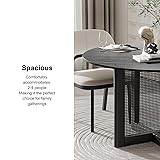 Casaphoria 46" Dining Table for 4, Wood Kitchen Table with Scratch-Resistant Top & Rattan Base, Modern Farmhouse Round Small Table for Living Room, Kitchen, Easy Assembly, Black (Chairs not Included)