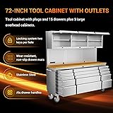 CHETTO C 72-inch Rolling Tool Chest Cabinet Mobile Workbench with 15 Storage Drawers and Wheels 3 Uper Cabinet Outlet SS Pegboard Stainless Steel Tool Box for Garage Warehouse