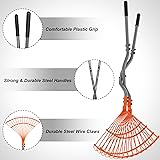 Collect More Leaves Faster: Walensee Leaf Grabber Rake is equipped with durable steel wire claws that grab 2–3X more leaves per scoop. The open-weave claw design holds tight to leaves and twigs without bending, making your yard cleanup faster and more efficient. Lightweight but Strong Handle: Crafted with a 0.8 mm thick steel handle, this rake weighs only 3.3 lbs yet provides heavy-duty strength. Its lightweight design reduces fatigue, allowing you to work longer without strain, while the steel construction ensures years of reliable use. Multi-Purpose Yard Tool: More than a leaf picker, this tool also handles grass clippings, nettles, small branches, and other debris. The ergonomic long-handle design means no more bending over—protect your back and make garden work enjoyable and effortless. Quick Assembly & Easy Use: Assemble in minutes—no extra tools required. Once set up, the grabber rake lets you scoop and dispose of debris hygienically without touching it. A simple and practical solution for home gardeners and yard owners. Space-Saving Storage: The detachable claw and handle design makes it easy to disassemble and store in small spaces, perfect for garages, sheds, or even hanging on the wall. Compact yet powerful, it’s the ideal tool for seasonal or year-round garden maintenance.